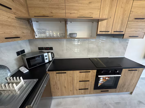 Новая вилла формата 3+1 предлагает комфортное пространство для семьи или компании друзей. В каждой комнате установлены удобные кровати с хорошими матрасами для полноценного отдыха. В доме есть 3 санузла с душевыми кабинами, а в гостиной расположен удобный раскладной диван. Кухня полностью оборудована всей необходимой техникой и посудой, чтобы вы чувствовали себя как дома.